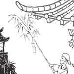 カッパ親子がなじみの足湯でのワンショット。 地上界のすすはらいをのぞいたせいか …