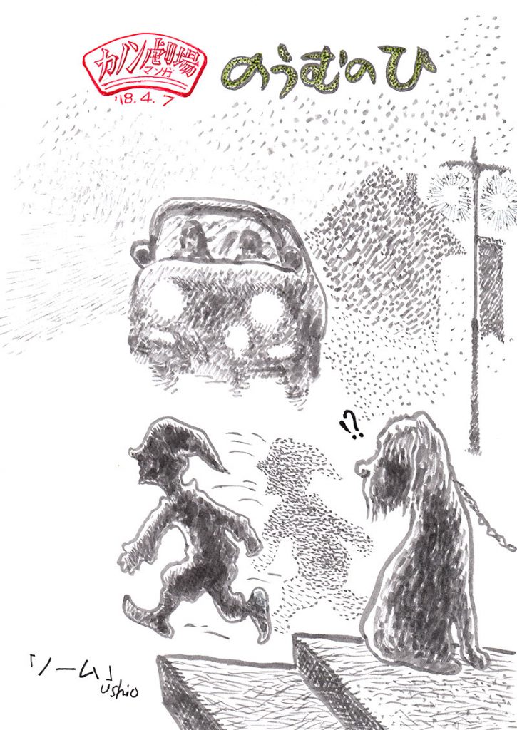 ノーム 霧の深い朝、外灯も悲しそうに点る。 車のライトも役に立たない。ノロノロ運転するしかない。 アッ! なんだ!! 車の前をよぎった小さい子供みたいな生き物がいる。 もしかして森の住人ノームおじさんでは…?! ねこのチロが不思議発見とサプライズした。 2018年 4月 7日 Tagged on: ノーム, 朝, 霧 By ブログ管理人 | 2018年4月7日 | まんが, 春, 風刺, 風物詩 | No Comments | ← ネムイ マイゴ → コメントを残す コメントをキャンセル メールアドレスが公開されることはありません。 * が付いている欄は必須項目ですコメント 名前 * メール * サイト 次回のコメントで使用するためブラウザーに自分の名前、メールアドレス、サイトを保存する。