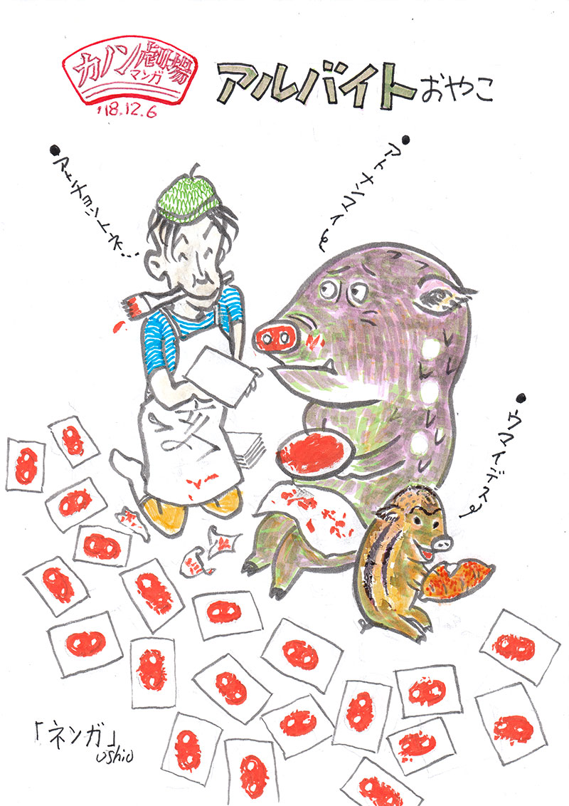 ネンガ 年賀状を版画で── と干支の猪でキバツなアイデアのデザインで制作中です。 仔猪をイモでもって頼み込んだみたいです。 うまく完成できますように…。 2018年 12月 6日 Tagged on: 干支, 年賀状, 版画, 猪 By ブログ管理人 | 2018年12月6日 | 冬, 風刺, 風物詩 | No Comments | ← ポエム ヒアイ → コメントを残す コメントをキャンセル メールアドレスが公開されることはありません。 * が付いている欄は必須項目ですコメント 名前 * メール * サイト 次回のコメントで使用するためブラウザーに自分の名前、メールアドレス、サイトを保存する。