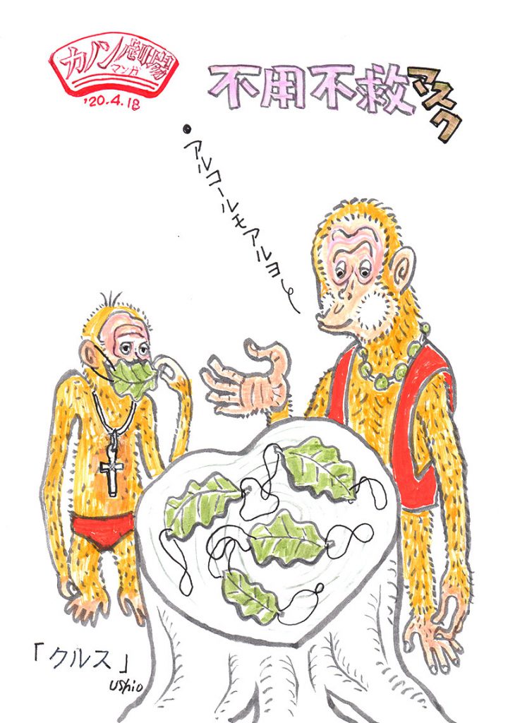 クルス お猿の世界でもマスク不足です。 カシワの葉の使い心地が良いと評判で どうにか感染にならず移行しています。 顔が赤いので熱の高低は目視では難しそうです。 2020年 4月 18日 Tagged on: コロナ, コロナウイルス, マスク, 猿, 葉 By ブログ管理人 | 2020年4月18日 | コロナウイルス, まんが, 春, 時事, 災害, 風刺 | No Comments | ← クラスター アラビア → コメントを残す コメントをキャンセル メールアドレスが公開されることはありません。 * が付いている欄は必須項目ですコメント 名前 * メール * サイト 次回のコメントで使用するためブラウザーに自分の名前、メールアドレス、サイトを保存する。