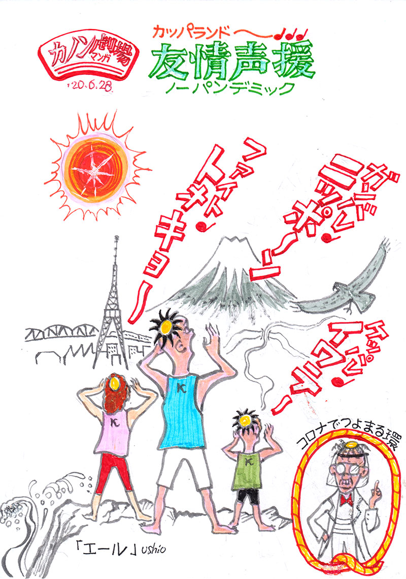 エール 新型ウイルスのコロナ禍に世界中が右往左往の状態!! 感染すると超危険な命取りになるので、 必死に防衛戦を繰り広げている。 日本中、どこの県も感染者が出ているのに 岩手県だけ発生に至っていない。 カッパランドも同じです。 同じよしみでエールをおくってくれました。 2020年 6月 28日 Tagged on: カッパ, カッパランド, コロナ, 岩手 By ブログ管理人 | 2020年6月28日 | コロナウイルス, まんが, 時事, 風刺 | No Comments | ← スパローズ サカムケローズ → コメントを残す コメントをキャンセル メールアドレスが公開されることはありません。 * が付いている欄は必須項目ですコメント 名前 * メール * サイト 次回のコメントで使用するためブラウザーに自分の名前、メールアドレス、サイトを保存する。