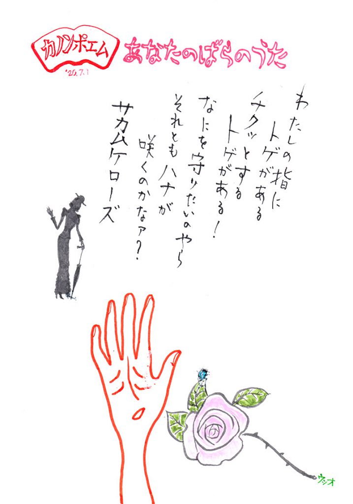 サカムケローズ 指に違和感★衣類にひっかかるモノがある。 チクッとくる★嫌な気分… 爪ぎわに出来ているトゲ!サカムケ… トゲだったら自分を守るためにあるのに これは守りはしない、 バラのように美しい花も咲かない、 わたしはひとりシャンソンをくちずさむ… ラビアンローズ 2020年 7月 1日 Tagged on: シャンソン, バラ, 棘, 爪 By ブログ管理人 | 2020年7月1日 | ポエム, まんが, 風刺 | No Comments | ← エール デート → コメントを残す コメントをキャンセル メールアドレスが公開されることはありません。 * が付いている欄は必須項目ですコメント 名前 * メール * サイト 次回のコメントで使用するためブラウザーに自分の名前、メールアドレス、サイトを保存する。