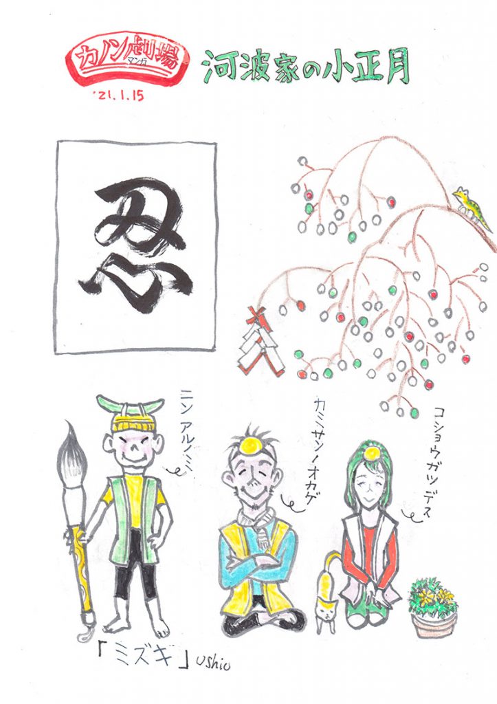 ミズキ カッパランドの小正月─。 ミズキの木を取ってきました。 山に入るのは人間に見つかる危険があります。 でも、どうにか川底に運びました。 例年通りおだんごを飾りました。 「今年の一字」に心の上にやいばと書く忍の字を選びました。 コロナ禍の今年にぴったりです。 カッパランドの小正月風景です。 2021年 1月 15日 Tagged on: コロナ, コロナウイルス, ミズキ, 小正月, 飾り By ブログ管理人 | 2021年1月15日 | コロナウイルス, まんが, 冬, 記念日, 風物詩 | No Comments | ← ツララ ドクバナ → コメントを残す コメントをキャンセル メールアドレスが公開されることはありません。 * が付いている欄は必須項目ですコメント 名前 * メール * サイト 次回のコメントで使用するためブラウザーに自分の名前、メールアドレス、サイトを保存する。