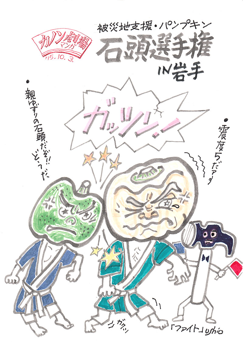 ファイト オリンピックの追加種目にエントリーしたい “かぼちゃの石頭選手権”は世界にここだけのギネスもの。 トマホークパンプキンと呼ばれる超固いかぼちゃ選手に 見物客も目から星を出して自分地の代表にエールを送ります。 量より質のモノヅクリ大国ならでワの発想!! 2015年 10月 3日 Tagged on: オリンピック, かぼちゃ, パンプキン, 追加種目 By ブログ管理人 | 2015年10月3日 | まんが, 時事, 秋, 風刺, 風物詩 | No Comments | ← ゲスト カンパイ → コメントを残す コメントをキャンセル メールアドレスが公開されることはありません。 * が付いている欄は必須項目ですコメント 名前 * メール * サイト 次回のコメントで使用するためブラウザーに自分の名前、メールアドレス、サイトを保存する。